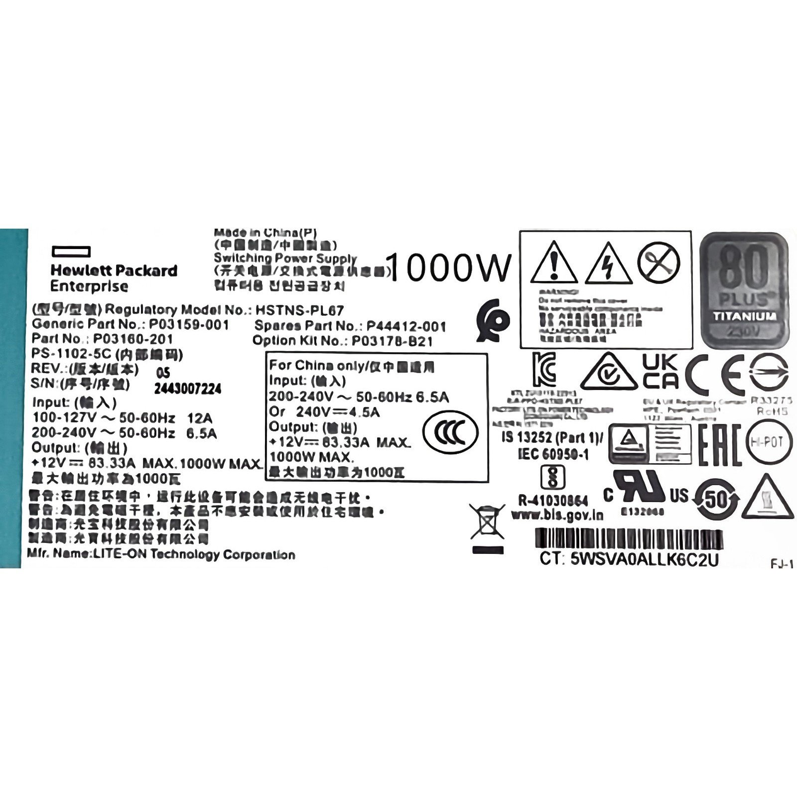 Hewlett Packard Enterprise HSTNS-PL67 P03160-201 1000 watt